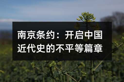 在历史的长河中,有那么一些时刻,它们如同巨石落入湖面,激起的涟漪深远而持久。南京条约的签订,便是这样一刻,它不仅标志着中国近代史的开端,更预示了一个时代的剧变——从封建帝国到半殖民地半封建社会的转变。